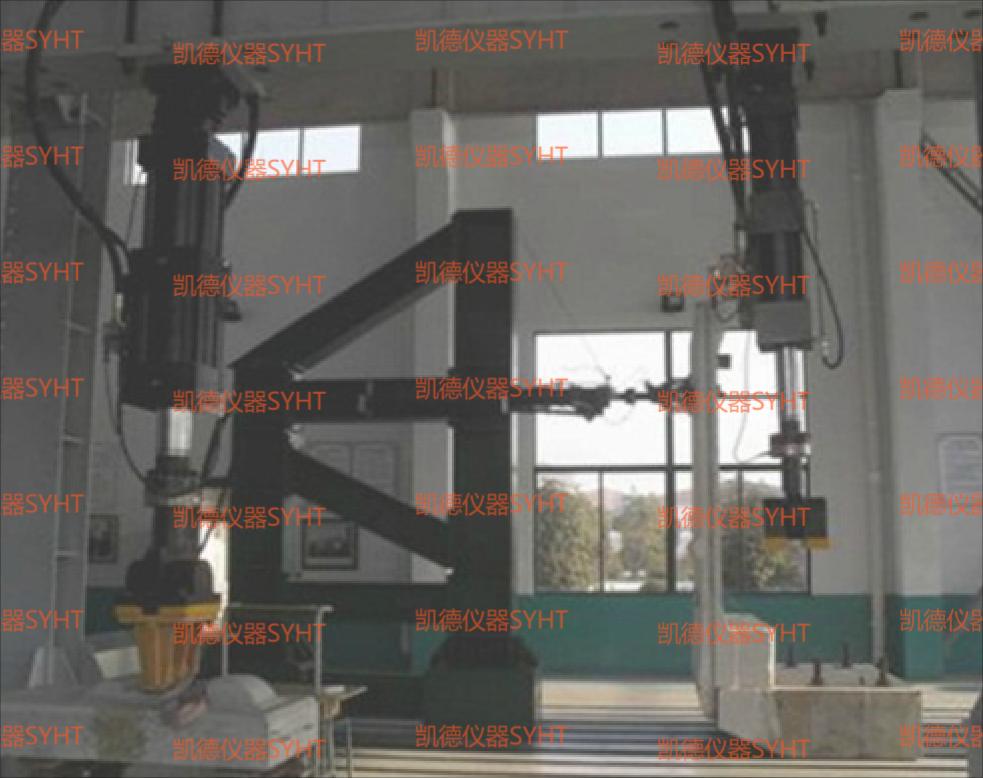 1) 二通道電液伺服疲勞試驗系統主要進行建筑結構構件、框架、梁、柱、節點等大型鋼筋混凝土結構和鋼結構的試驗,預應力梁、柱、框架等鋼筋混凝土預應力構件的試驗。該試驗系統主要由2臺電液伺服動作器、1臺恒壓伺服泵站、1套多通道伺服控制器、試驗軟件、管路和加載框架等組成。該試驗系統使用靈活,既可同時進行兩通道協調加載試驗,也可進行單通道的加載試驗,可根據試驗需要配置輔具,進行各種結構件的疲勞加載試驗。